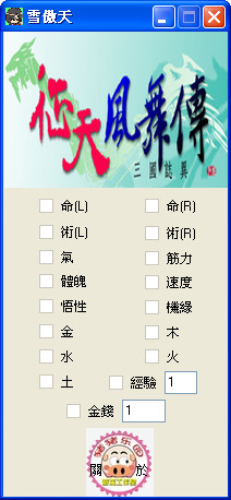 征天風(fēng)舞傳三國(guó)志異修改器屬性修改器,修改主角的各項(xiàng)屬性。