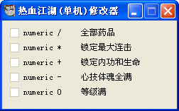 熱血江湖單機版修改器簡單的5項功能修改器,能修改藥品和等級,讓您輕松的完成游戲。