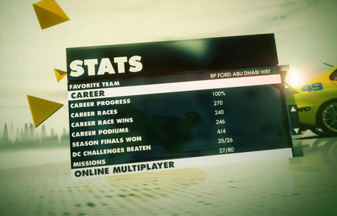 陸陸續(xù)續(xù)玩了半個(gè)月,終于100%爆機(jī)了,第四級(jí)難度,G25外設(shè),900度+序列檔+車內(nèi)視角,輔助全關(guān)。dirt3整體說(shuō)來(lái)不如2好,抓地力過(guò)于強(qiáng),如果采用H檔+離合,換檔時(shí)對(duì)離合的要求過(guò)于精確,差一點(diǎn)就掛不上檔,賽道也太少,就是來(lái)回開(kāi)再加個(gè)天氣變化,希望下一代能接近RBR的操控和WRC2010的賽道。