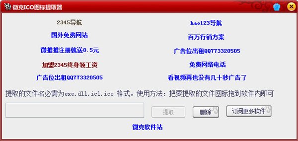 打開一個圖片文件或者需要提取exe文件的圖標(biāo),然后把該文本拖放到微克ico提取工具的路徑框,點(diǎn)擊提取即可。微克ico提取工具可以為易軟件編寫方面快速獲得軟件圖標(biāo),從而大大提高了工作的效率.
