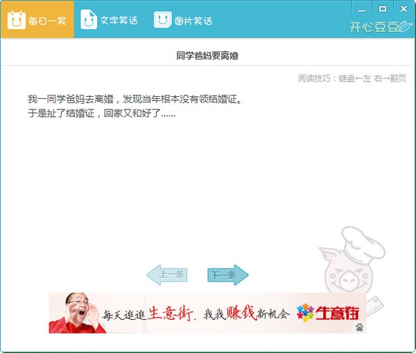 開心豆豆每日奉送最精彩搞笑段子,讓你快樂每時(shí)每刻。絕對(duì)是您居家旅行、行走江湖的必備猛藥!
