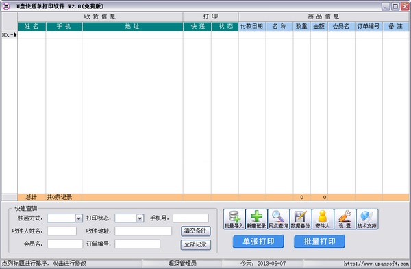 U盤快遞單打印軟件 v2.0 綠色免費(fèi)版 U盤快遞單打印軟件外觀簡潔,純綠色軟件,功能強(qiáng)大完全滿足你的快遞單打印管理,適合開網(wǎng)站的店長快遞單打印。
