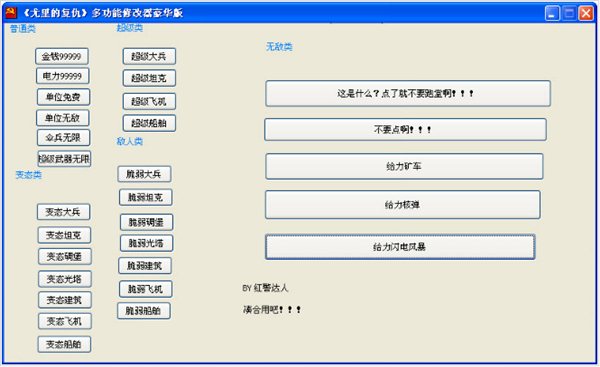 尤里復仇修改器包含無限金錢,無限電力,傘兵無限等數(shù)十種屬性修改和道具獲得