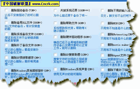 精心打造了Xp減肥茶,減肥選項應(yīng)該算全的啦。希望各位喜歡~綠色軟件。只有一個文件。注:有XP安裝盤,都可以安全刪除,但要看你方便不~沒安裝盤注意看注釋