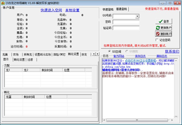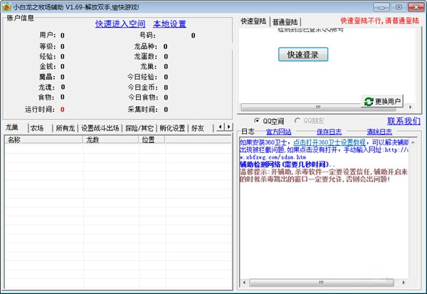 QQ龍之牧場(chǎng)輔助是一款適用于QQ空間《龍之牧場(chǎng)》輔助工具。該輔助模擬人工操作,有了它你可以放開雙手。目前qq空間龍之牧場(chǎng)還沒(méi)有比較穩(wěn)定可靠又無(wú)毒安全的輔助,所以如果是功能很BT的龍之牧場(chǎng)輔助,希望大家不要下載,可能是病毒來(lái)的。
