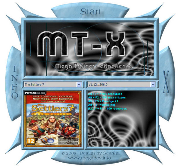 解壓完成后,安裝修改器,運行MegaTrainer eXperience.exe,然后在左側列表中找到The Settlers 7,在右側選擇版本即可。