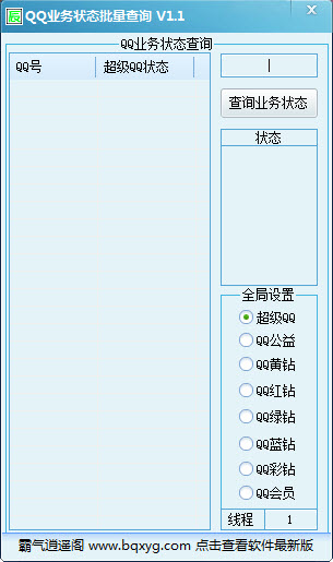 QQ業(yè)務狀態(tài)批量查詢是一款QQ業(yè)務狀態(tài)批量查詢軟件支持多線程操作,可以一鍵查詢?nèi)我釷Q的業(yè)務開通和圖標點亮情況。