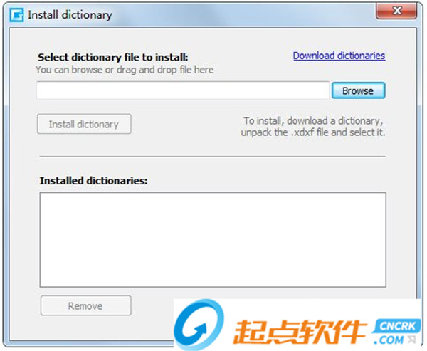 6、選擇要安裝的字典文件,您可以在這里瀏覽或拖放文件;