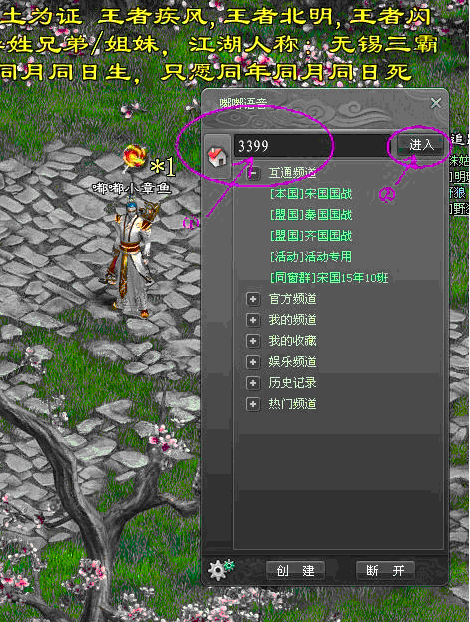 登陸嘟嘟語音后,在界面最上方可以看到“頻道輸入框”,在這里輸入您要去的頻道號碼,然后點(diǎn)擊“進(jìn)入”按鈕,或者直接回車即可進(jìn)入該頻道。(如圖)