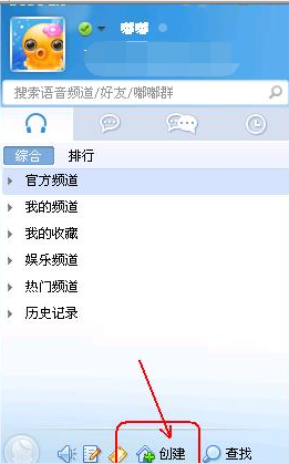 單擊語音面板下方的“創(chuàng)建”按鍵, 彈出創(chuàng)建新頻道窗口后,填寫內(nèi)容完成后單擊確定建立頻道。