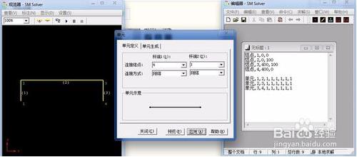 在操作界面進(jìn)行數(shù)據(jù)輸入。通過結(jié)點(diǎn)、單元等構(gòu)成結(jié)構(gòu)從而進(jìn)行計(jì)算。在界面右上方有五個(gè)按鈕,從左到右分別是:結(jié)點(diǎn)、單元、位移約束、荷載條件、材料性質(zhì)。