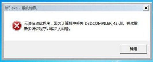 當(dāng)運行軟件或游戲時,系統(tǒng)提示“丟失d3dcompiler_43.dll”、“缺少d3dcompiler_43.dll”等類似錯誤信息,如游戲塵埃2、榮譽勛章、戰(zhàn)地3等游戲缺少d3dcompiler_43.dll而無法啟動。