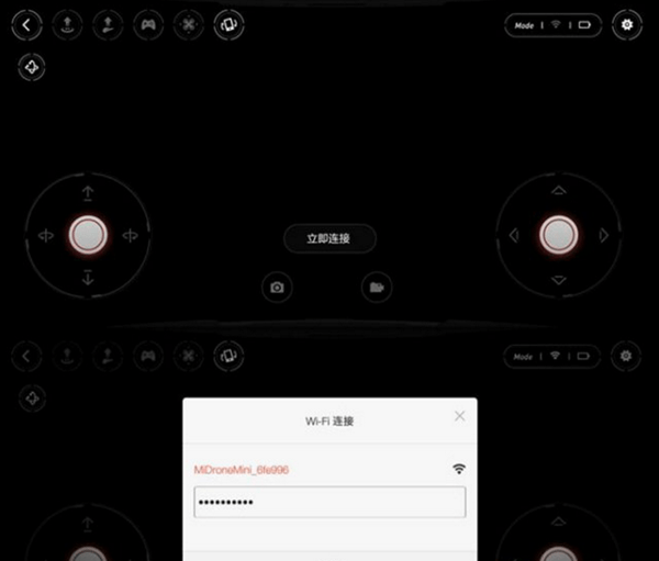 首先我們需要通過Wi-Fi讓米兔遙控小飛機(jī)APP和米兔遙控小飛機(jī)進(jìn)行連接。米兔遙控小飛機(jī)的連接非常簡單,首先確保手機(jī)的Wi-Fi已打開,點(diǎn)立即連接,只要產(chǎn)品處于開機(jī)狀態(tài),米兔遙控小飛機(jī)APP就會搜到它,然后輸入密碼,默認(rèn)的密碼為123456789,后期我們也可以進(jìn)行修改。不過在連接時(shí)出了個(gè)小問題,就是輸入密碼后點(diǎn)擊連接無反應(yīng),這個(gè)問題也很好解決,我們只需要打開手機(jī)的WLAN列表,找到產(chǎn)品的Wi-Fi名稱,然后點(diǎn)擊輸入密碼進(jìn)行連接就可以了。