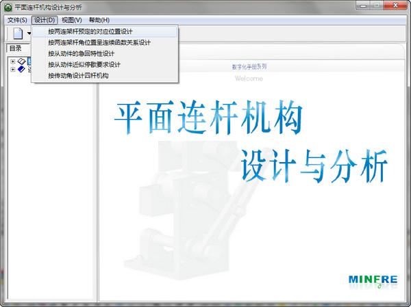 平面連桿機(jī)構(gòu)設(shè)計(jì)與分析的功能包括文件管理、機(jī)構(gòu)選型、平面連桿機(jī)構(gòu)設(shè)計(jì)、平面連桿機(jī)構(gòu)運(yùn)動分析、平面連桿機(jī)構(gòu)運(yùn)動仿真。