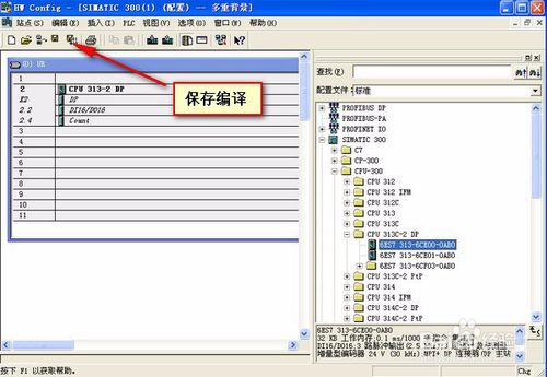 西門子PLC中的多重背景應(yīng)用首先進(jìn)行S7-300軟件的硬件組態(tài)。然后點(diǎn)擊保存并編譯。