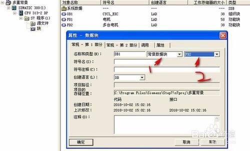 在OB1主程序中調(diào)用FB塊-->FB2到程序段中,添加關(guān)聯(lián)的DB2背景數(shù)據(jù)塊。