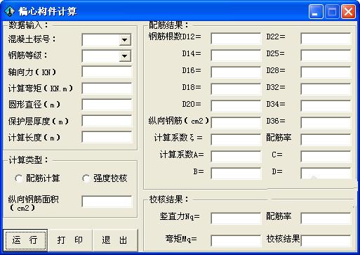偏心構(gòu)件計算是一款查詢計算工具,是工程所不可缺少的工具之一,方便快捷準(zhǔn)確!輸入相應(yīng)數(shù)據(jù)、計算類型,點(diǎn)擊“運(yùn)算”就可以得出配筋結(jié)果和校核結(jié)果。而且還支持打印功能。