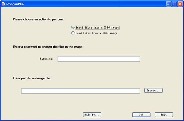 SteganPEG一個(gè)能在JPG圖片中隱藏其它文件的加密工具。功能: 可以設(shè)置口令,沒有口令即使是你自己也無法知道隱藏了什么內(nèi)容。支持隱藏后再次壓縮JPG圖片