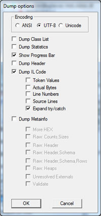 3. 通過ildasm轉(zhuǎn)儲保存為IL文件.--選擇菜單File>Dump,選擇UTF-8編碼,如下圖: