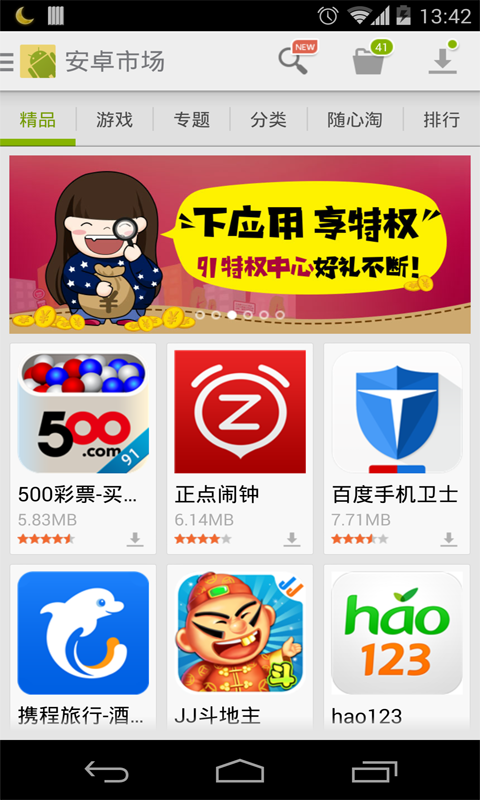安卓市場提供海量軟件資源,包羅萬象應(yīng)有盡有;擁有上千萬忠實用戶,日均下載量在同類市場中居前列,在國內(nèi)Android市場上占主體地位。