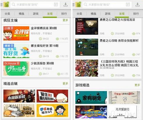 而另一檔專題“少數(shù)派報告”,更針對資深安卓用戶從專業(yè)的產(chǎn)品角度分析應(yīng)用。還有各種熱門主題應(yīng)用合輯和精選游戲?qū)n},安卓市場的小編們總能將各種同類元素和色彩鮮明的APP匯聚在一起,呈現(xiàn)妙趣橫生、活力時尚的特色專題,不管你是學(xué)生黨、上班族、小清新還是重口味,在安卓市場都會省去搜尋的漫無目的,感受特色專題帶來的方便。
