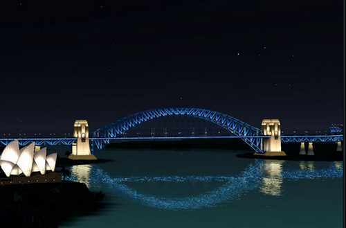 特大城市2012悉尼海港大橋mod集成了60m大道添加橋梁的夜景,給你更好的游戲體驗,起點提供特大城市2012mod下載。