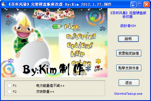 茶杯風暴修改器是同名游戲的2項功能輔助工具,擁有電力,方塊的修改功能,幫助玩家輕松完成游戲