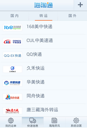 海淘通可以幫你查詢你的運單詳情,支持查詢國內(nèi)外各大主流快遞公司查詢以及大部分的轉(zhuǎn)運查詢。海淘通支持查詢的轉(zhuǎn)運公司、國外快遞、國內(nèi)快遞達(dá)80多家,內(nèi)置主流物流公司查詢跟蹤、最新快遞狀態(tài)自動提醒等便利功能,界面友好,更新迅捷。海淘通便捷的運單查詢管理服務(wù),創(chuàng)新的二維碼同步快遞單號,貼心的物流跟蹤提醒,以及全面的快遞信息列表展示,將成為你海淘的必備利器。