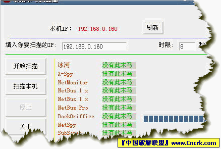 這是一個能掃描你機器中是否潛在木馬和能夠查找好友的機器中是否有木馬的工具,這一切全部都在這一個小小的工具中完成。本工具通過檢查端口是否開放來判斷是否有木馬,當(dāng)你手中沒有其他專用工具,或者有MM讓你幫忙檢查其機器中是否有木馬的時候,這個軟件就可以大顯身手了(切身體會,哈哈...)。