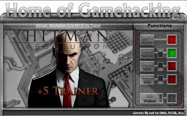 殺手5:赦免五項修改器 v1.0.447.0 綠色免費版 殺手5:赦免五項修改器是一款運行在同名游戲中的修改工具,在游戲中輸入相應(yīng)的熱鍵便可實現(xiàn)無限生命、無限彈藥、無限直覺等五項功能,讓您在游戲中輕松過關(guān)!
