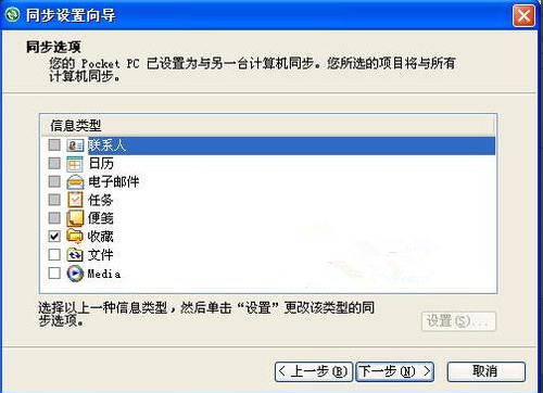 向?qū)е幸灿型竭x項(xiàng),可以選擇手機(jī)和PC需要同步的文件類型。