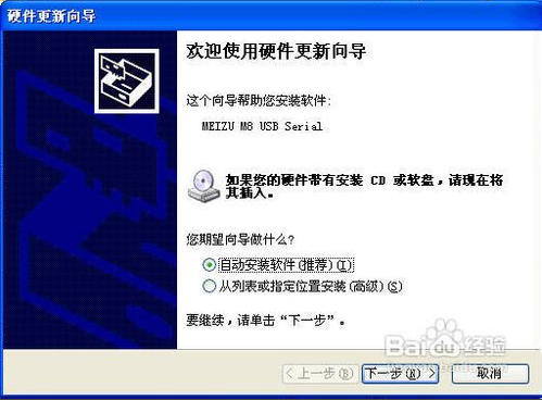 將設(shè)置好的M8連上USB線并插到電腦的USB端口上,這時(shí)候系統(tǒng)會(huì)提示找到新硬件并要求安裝硬件驅(qū)動(dòng)。