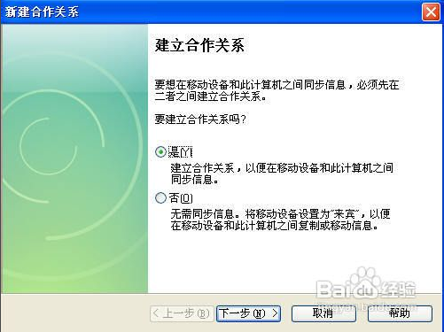 第一次啟動(dòng) ActiveSync 時(shí),系統(tǒng)將提示您建立同步關(guān)系。