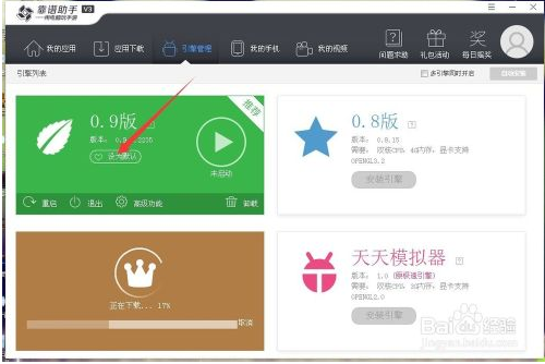 2、然后就會出現(xiàn)如下的界面,單擊鼠標(biāo)左鍵安裝引擎就可以安裝安卓引擎了!下載需要等一會!