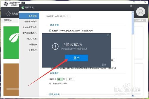 8、設(shè)置完上一步以后,是需要重啟的,會彈出如下的界面,點(diǎn)一下重啟就可以了!內(nèi)存就修改好了!