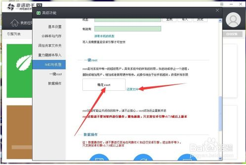 9、最后,有些軟件是需要root的,在這里可以設(shè)置root,點(diǎn)一下圖下的位置,然后如果想還原的話,可以點(diǎn)還原文件,很簡單的!如下圖!