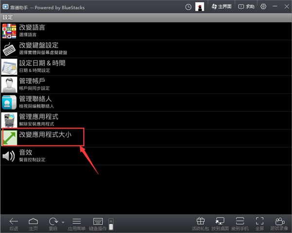 步驟三、點(diǎn)擊:改變應(yīng)用程式大小