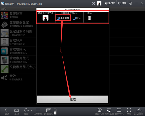 步驟四:選擇要改變的應(yīng)用,并將其選擇平板電腦,如下圖狀態(tài)。然后點(diǎn)擊完成,并重新進(jìn)入該應(yīng)用。