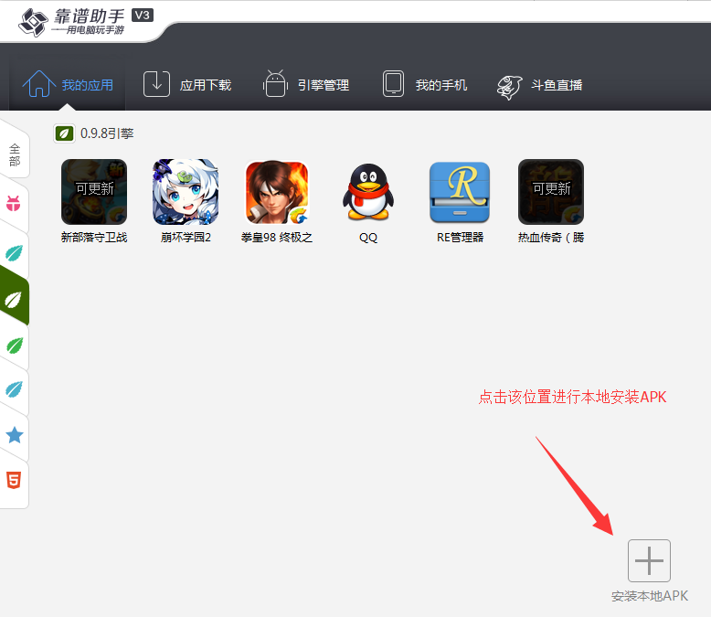 1、進(jìn)入【我的應(yīng)用】,點(diǎn)擊底部“安裝本地APK”