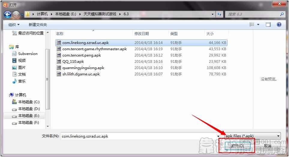 2、找到電腦中已下載好的應(yīng)用APK,點(diǎn)擊“打開”,即可實(shí)現(xiàn)APK安裝至靠譜助手中: