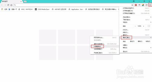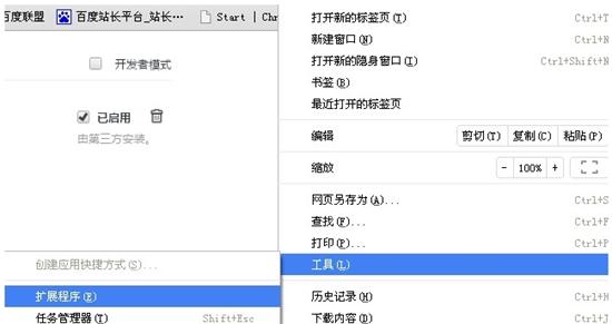 1、點擊谷歌瀏覽器右上角的自定義及控制按鈕,依次選擇擴展程序——工具;