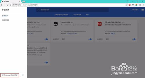 2、在擴展程序面板,按照圖示,打開Google應用商店。