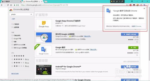 4、稍等片刻安裝成功,然后就可以在瀏覽器工具欄看到google翻譯啦!