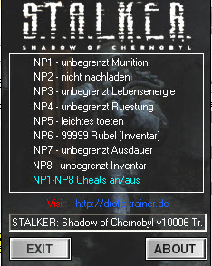 潛行者:切爾諾貝利的陰影八項修改器,是一款同名游戲的作弊工具,共有八個選項,充分滿足玩家的需要,幫助你輕輕松松通過難關,享受輕松愉快的游戲樂趣。