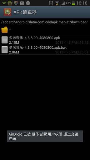 - 支持對apk文件直接解包和打包以及直接簽名APK安裝包(長按)