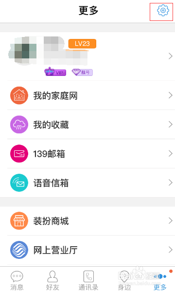 在“更多”頁(yè)簽點(diǎn)擊右上角的齒輪符號(hào)可進(jìn)入設(shè)置頁(yè)面;
