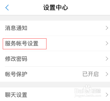 在設(shè)置中心頁(yè)面點(diǎn)擊“服務(wù)賬號(hào)設(shè)置”;