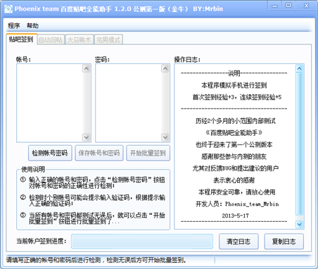 phoenix team團隊推出的百度貼吧全能助手具有貼吧簽到、自動回帖、大召喚術等功能,歡迎下載體驗。