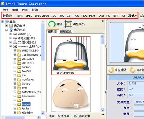 ·總圖像轉(zhuǎn)換器具有內(nèi)置的瀏覽器。你可能之前或之后,轉(zhuǎn)換方便地查看您的照片里面的程序。您可以使用文件的詳細列表工作(名稱,大小,類型,修改屬性)或它們的縮略圖。