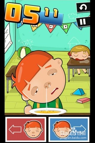 第三關名為“傻乎乎的男孩”,你需要通過按鍵來控制男孩的頭,不要讓他偏倒一方然后鼻涕就流到飯上就開始結算了,你需要堅持更久的時間來獲取更高的分數。男孩的頭倒向左邊時,我們就快速的點擊右邊的按鍵;男孩的頭倒向右邊時,我們就快速的點擊左邊的按鍵。